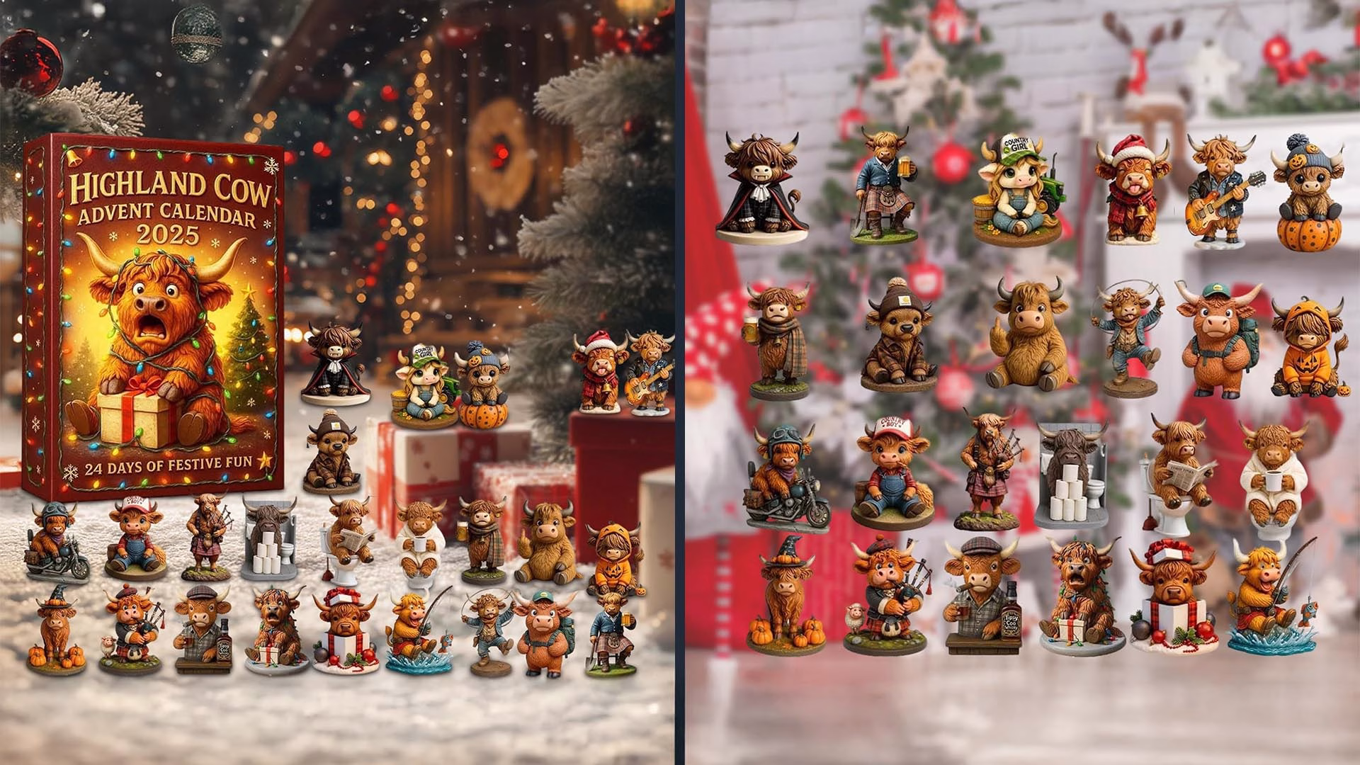 Premium Durability & Lasting Quality – Highland cow advent calendar is crafted from sturdy, shatter-resistant resin. 24 Days of Daily Surprises – Highland cow christmas celebrates the countdown to Christmas with 24 individually designed Highland cow ornaments, This 2025 Highland Cow Advent Calendar includes 24 unique mini cow ornaments.