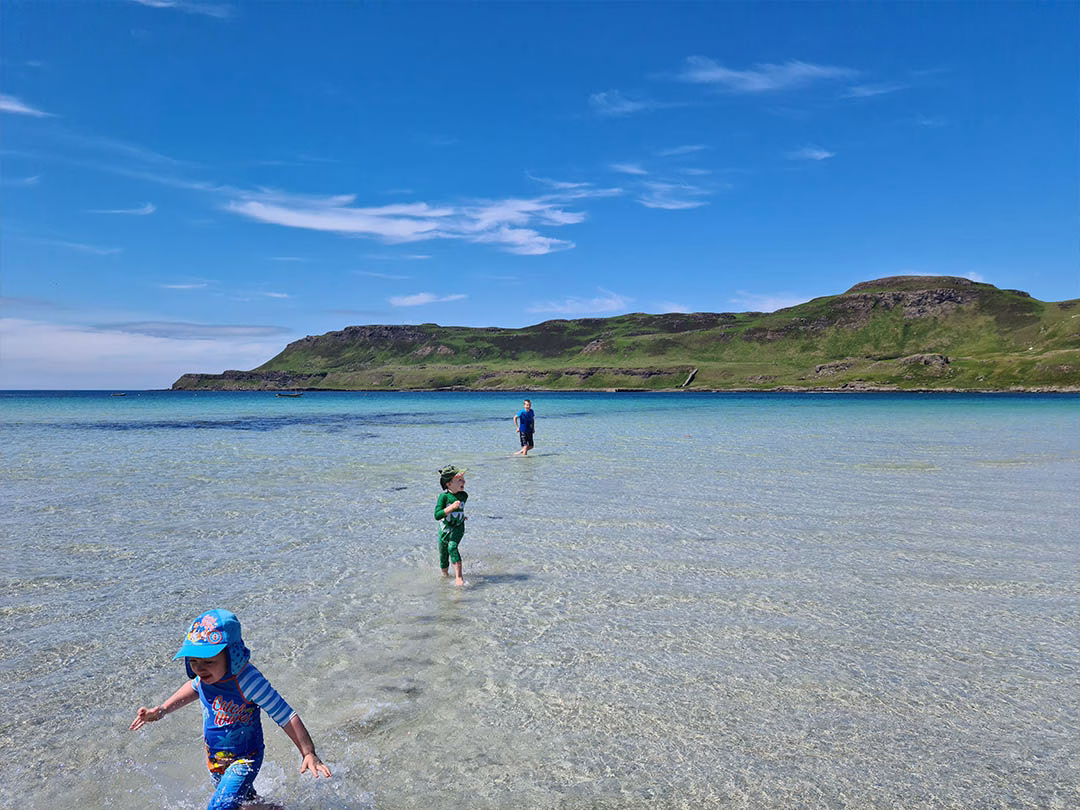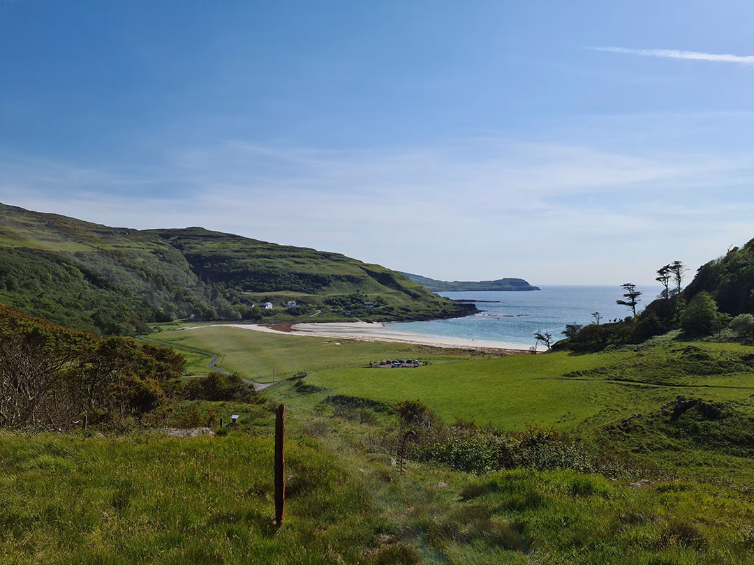 Beyond its stunning aesthetics, Calgary Beach is known for its excellent accessibility and family-friendly amenities. A car park is conveniently located just a short walk from the sand, and basic facilities like composting toilets are often available. The beach is backed by the ‘Calgary Art in Nature’ trail, an enchanting woodland walk adorned with quirky sculptures and installations, providing an extra layer of interest for those seeking more than just sun and sand. On clear days, views stretch out across the Atlantic to the distant, low-lying islands of Coll and Tiree, adding to the vastness of the coastal panorama.