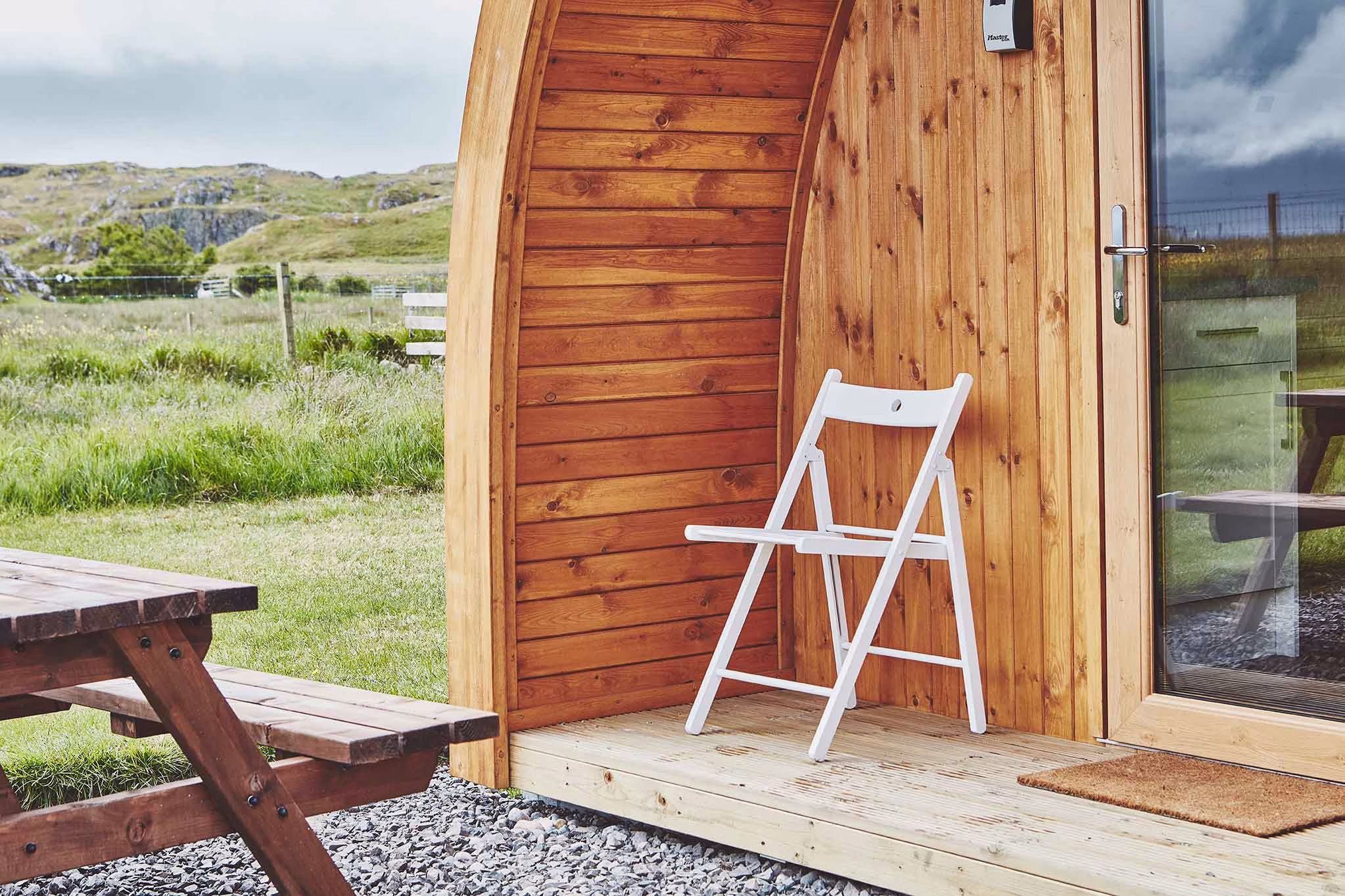 Beyond the individual pods, Iona Pods provides well-maintained communal facilities to enhance the guest experience. These include clean and well-kept toilet and shower blocks, as well as dedicated washing-up areas. Laundry services are also available on site. Outside each pod, guests will find a picnic bench and a small fire pit, perfect for enjoying the peaceful evenings and the stunning island scenery. The setup encourages a close connection with Iona’s serene environment, offering a memorable stay.