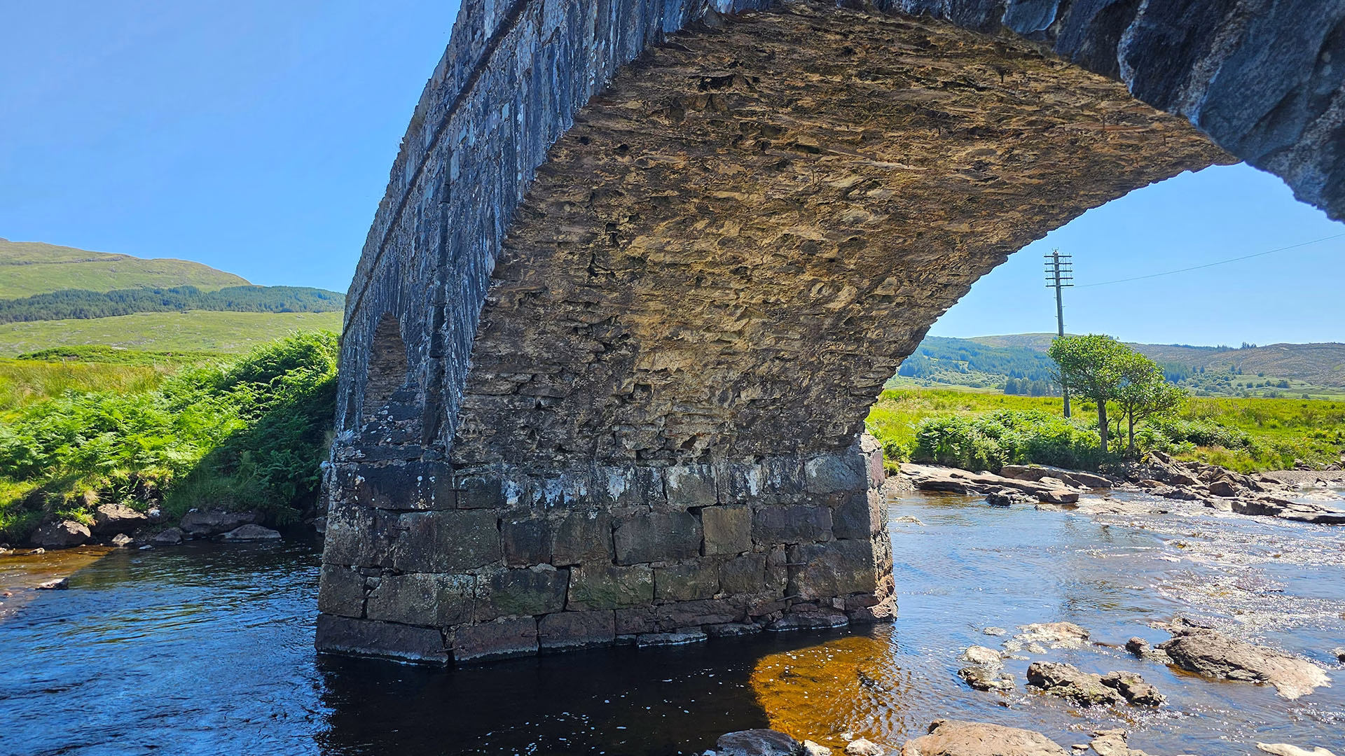 Loch Beg Bridge, nestled within the picturesque landscape of the Isle of Mull, is more than just a crossing point; it’s a charming structure that perfectly encapsulates the essence of Scotland’s natural beauty. Located at the head of Loch Beg, which itself is an inlet of the larger Loch Scridain, the bridge stands framed by lush greenery and the tranquil waters of the loch. For photographers and nature lovers, it offers an idyllic backdrop, inviting visitors to pause, reflect, and appreciate the rich tapestry of the Scottish countryside, where the rustic charm of the bridge blends seamlessly with its serene surroundings. There are actually two bridges here: an older, historic stone arch bridge that may have Telford-era influences, and the newer concrete bridge that carries the modern A849.
