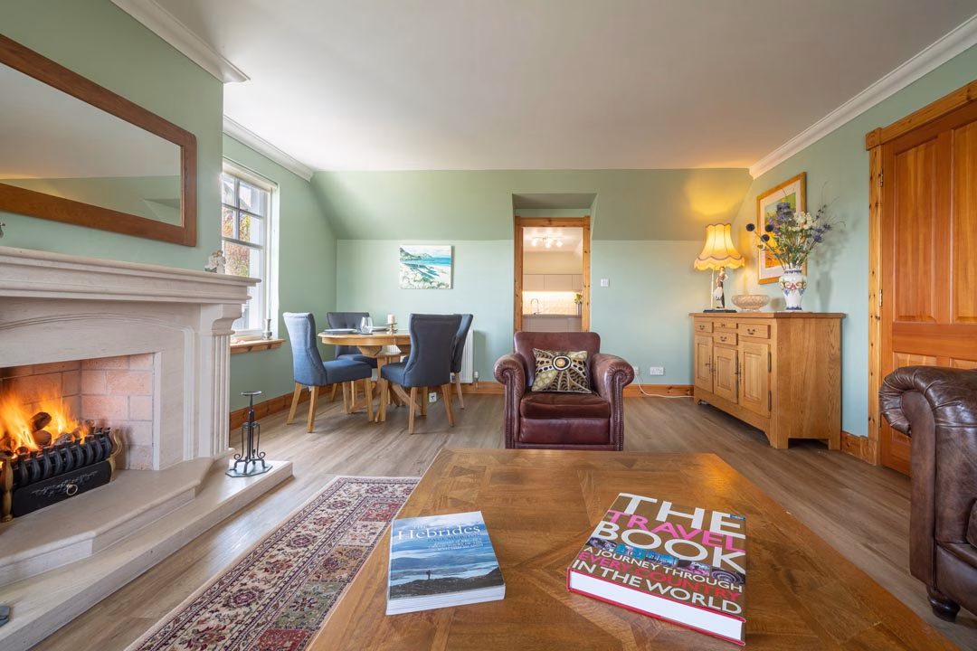 The apartment is well-equipped with modern amenities, including central heating and superfast WiFi broadband, making it a comfortable place to stay in any season. Located a short downhill walk from the centre of Tobermory, it provides easy access to the town’s shops, restaurants, and attractions while offering a quiet retreat. The property is suitable for children aged 10 and over, though pets are not permitted.
