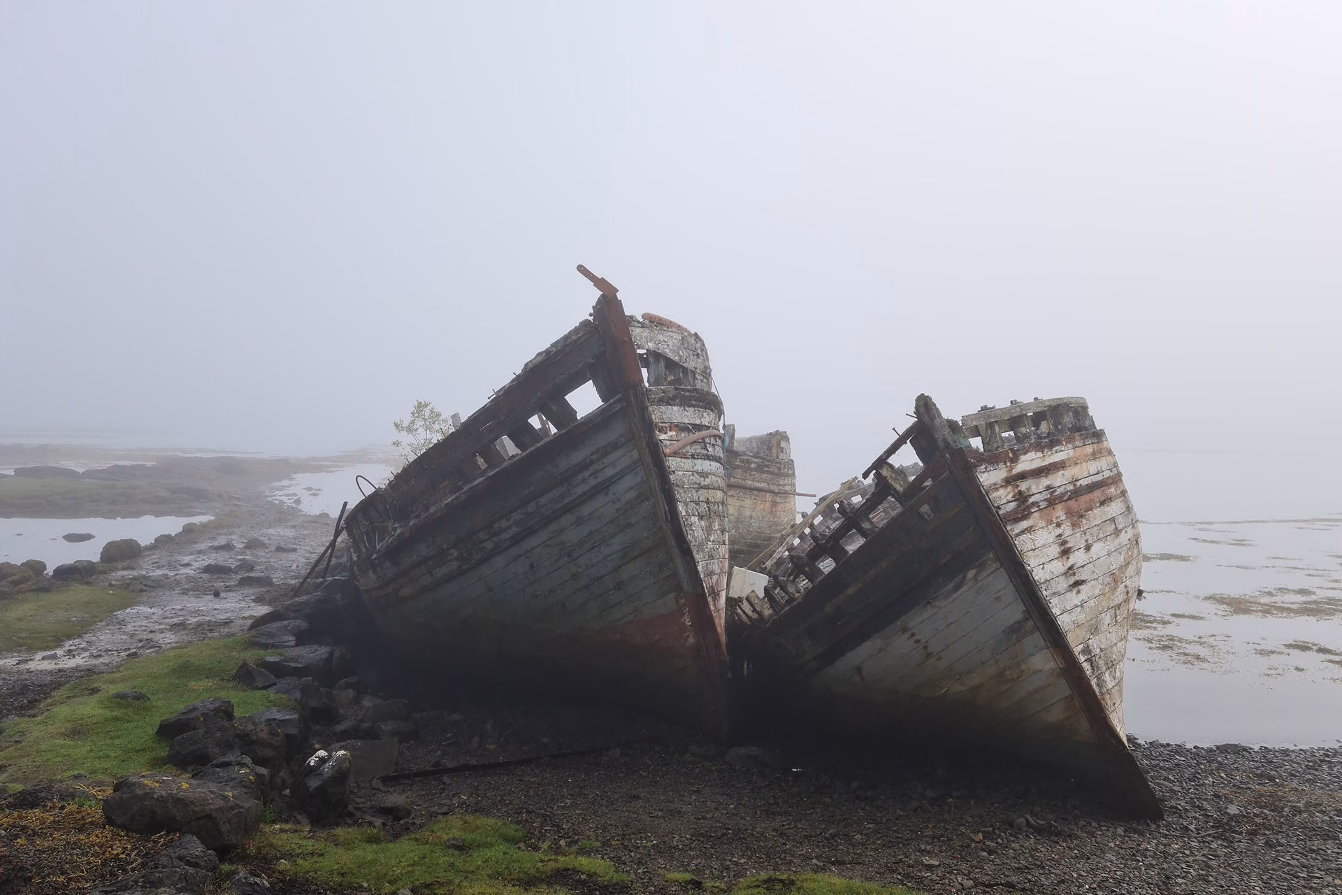 These derelict boats, believed to have been beached since the 1970s, were once active participants in Mull’s fishing industry. Their story tells of an unfulfilled salvage project, leaving them to gracefully decay by the sea. Among the most identifiable remains, you might recognize the Pavonia WK53, originally built in Banff, or the Elsie May, which operated out of Oban. Their skeletal forms and peeling paint offer a silent narrative of working life on the Scottish seas.