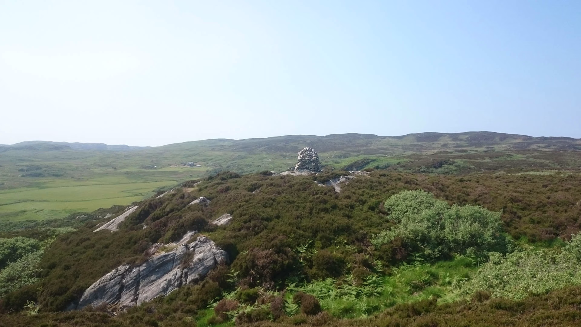 The Last Look Back cairn is a poignant and historically significant landmark situated on a hill above Uisken Beach on the Ross of Mull. This cairn marks a traditional resting spot for funeral processions that would traverse the long, arduous journey to Kilvickeon Church. The name, “Last Look Back,” originates from the solemn tradition of the cortege pausing at this very spot to give the deceased a final view of their home.