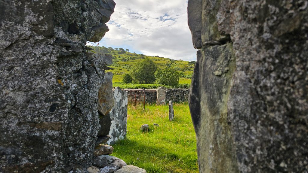 The chapel has an old graveyard that has served the local community over generations. Its location also mattered because it stands on the seaward side of the road. In those days, people often travelled by sea as roads were limited, so being close to the water made the chapel more accessible to some visitors arriving by boat across the Sound of Mull.