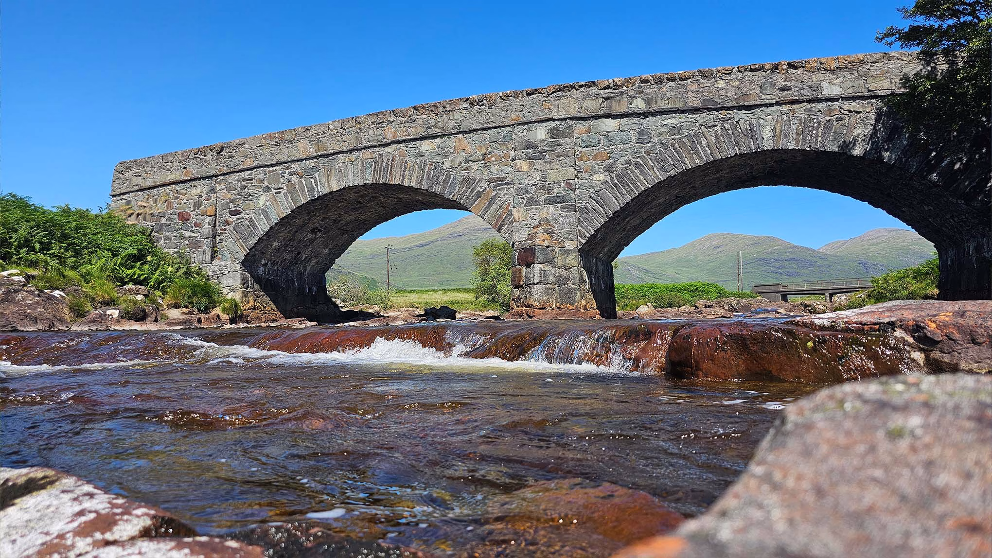 Today, the site vividly presents two eras of island transport. The modern, three-span concrete crossing carries the main artery, the A849, accommodating the volume and speed of contemporary life. Yet, standing slightly downstream, bypassed and preserved, is the original stone bridge. It remains a patient testament to the engineering standards of a bygone age.