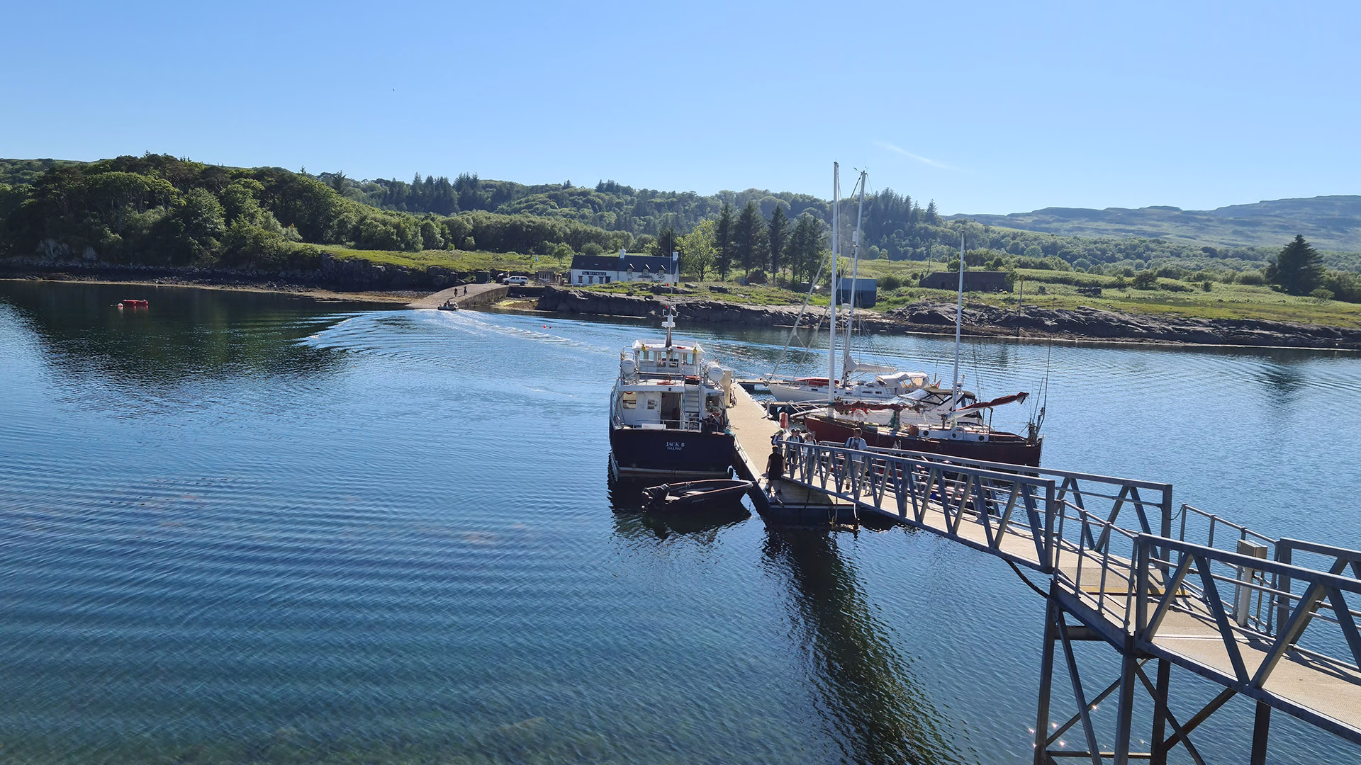 Take the road west to Ulva Ferry, around an hour’s drive, then cross by the small foot ferry to Ulva. From there, follow the track across Ulva, about seven to eight miles, and over the stone causeway to Gometra. No vehicles, no shortcuts, and no stress, just the long, beautiful way round.